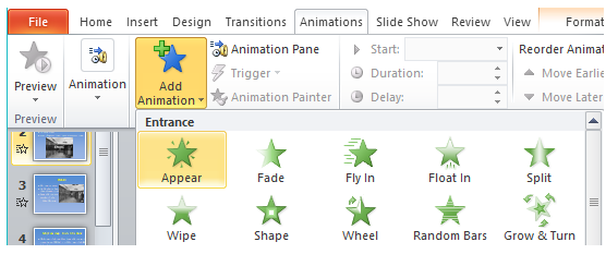 3. Nháy chuột chọn hiệu ứng động thích hợp trong nhóm Animations.