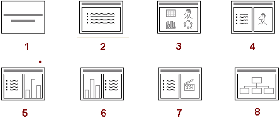 • Các phần mềm trình chiếu thường có sẵn các mẫu bố trí nội dung (layout) trang chiếu.